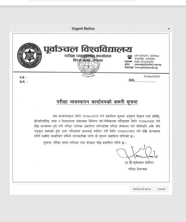 पूर्वाञ्चल विश्वविद्यालय परीक्षा नियन्त्रण कार्यालयले विभिन्न संकायहरुको परीक्षाको मिति सारेको छ ।