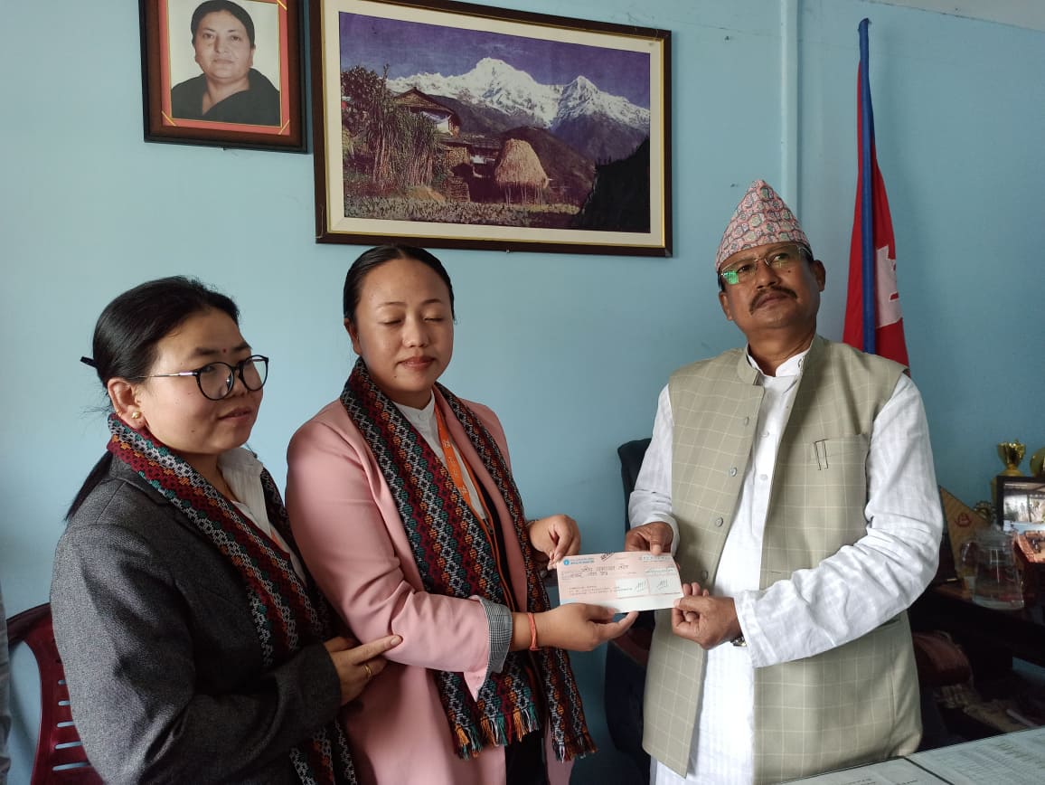 भाटभटेनी सुपरस्टोरका प्रवन्ध निर्देशक मीन कुमार गुरुङका तर्फबाट प्रवन्धकद्वय लक्ष्मी गुरुङ र मायाँ रानामगरले मेयर द्धारिकलाल चौधरीलाई ११ लाख रकमको चेक हस्तान्तरण गरे ।