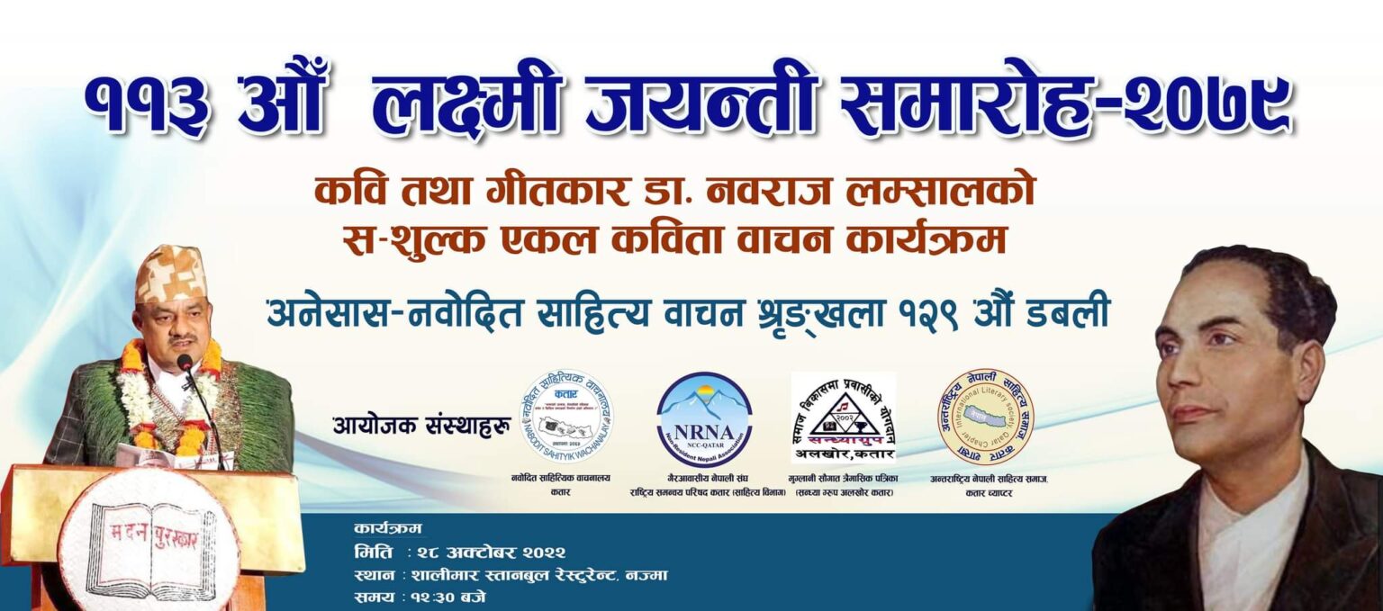 जन्मजयन्ती समारोह नवोदित साहित्यिक वाचनालय कतारको ११९ औँ डबलीको अवसरमा कतारमा स्थापित साहित्यिक संस्थाहरू अन्तर्राष्ट्रिय नेपाली साहित्य समाज कतार शाखा, सन्ध्या ग्रुप अल्खोर, नवोदित साहित्यिक वाचनालय र एनसिसि कतारको साहित्य बिभागले आयोजना गर्न लागेको हो ।