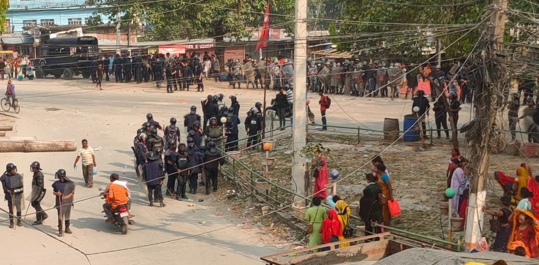 प्रदर्शनकारीलाई हटाउने क्रममा प्रहरीमाथि ढुंगामुढा प्रहार भएपछि झडप भएको बताइएको छ । झडपमा परी दुईजना प्रहरी र एक प्रदर्शनकारी महिला घाइते भएकी छन् ।