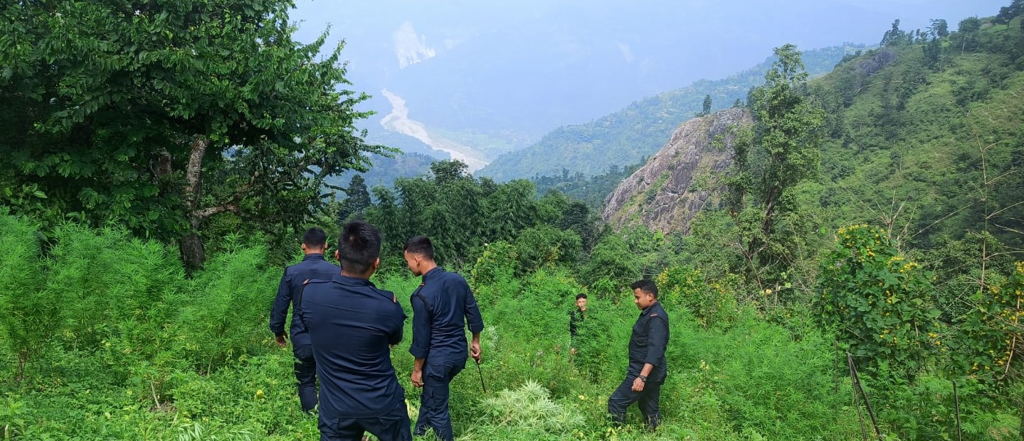 कोसी प्रदेश प्रहरी कार्यालय विराटनगरको सुरक्षा सुनिश्चितता अभियान २०८० अन्तरतगत अवैध रूपमा लगाएका गाँजाका बोटहरू नष्ट गर्ने अभियानअनुसार असोज २६ गते इलाका प्रहरी कार्यालय छिन्ताङ, प्रहरी चौकी आँखिसल्ला र त्रिवेणीबाट खटिएको प्रहरी टोलीले धनकुटाको शहिदभूमी गाउँपालिका १, ३, ७ नम्बर वडाका २३ रोपनी जग्गामा लगाएको ५७ सय गाँजाको बोट नष्ट गरेको छ ।