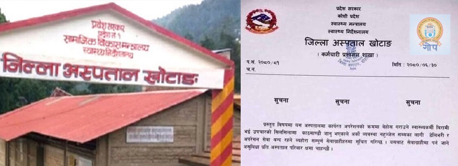 शल्यक्रियाका क्रममा बेहोस गराउने स्वास्थ्यकर्मी उपचारमा गएसँगै अर्को व्यवस्था नभएसम्मका लागि प्रसूति सेवा बन्द गरिएको जिल्ला अस्पताल खोटाङका निमित्त प्रमुख डा चतुरानन्द यादवले जानकारी दिनुभएको छ ।
