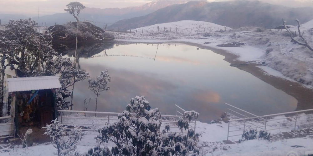 गुराँसको राजधानी भनेर परिचित सो पर्यटकीय क्षेत्रमा गत भदौदेखि वर्षा नभएको बताइएको छ । सो क्षेत्रमा मङ्गलबार साँझ वर्षा भएसँगै हिउँ परेको हो ।