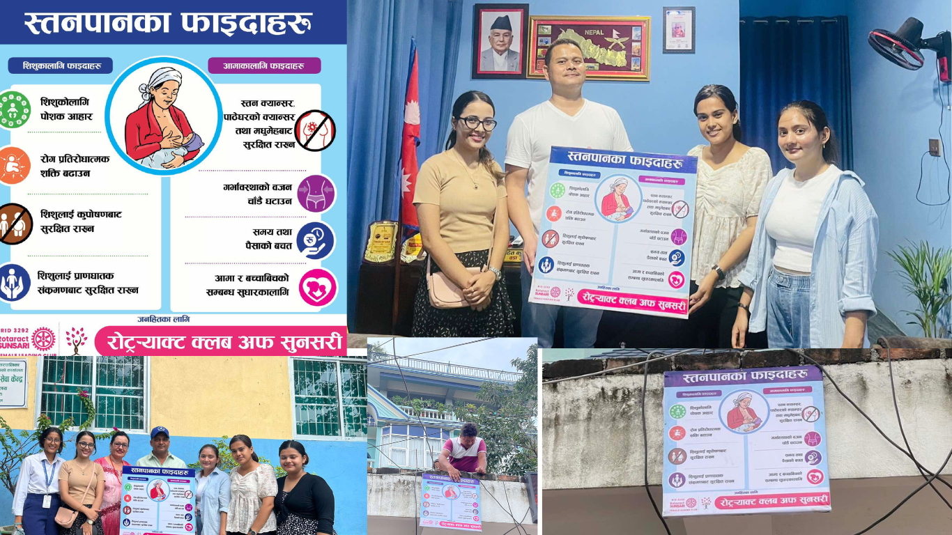 विश्व स्तनपान सप्ताहको अवसर पारेर क्लबले इटहरी उपमहानगर, सम्बन्धित वडा कार्यालय, सार्वजनिक शौचालयसहित अन्य विभिन्न सार्वजनिक स्थलमा सचेतनामूलक बोर्ड राखेको हो ।
