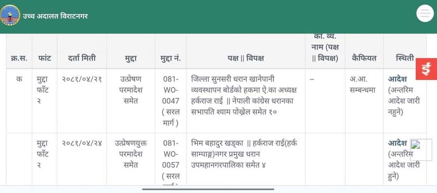 धरान १७ निवासी भीमबहादुर खड्काले दायर गरेको रिटमा आइतबार सुनुवाई गर्दे न्यायाधीश विमल सुवेदी र सूर्यनाथप्रकाश अधिकारीको संयुक्त इजलाशले अन्तरिम आदेश जारी गरेको हो ।
