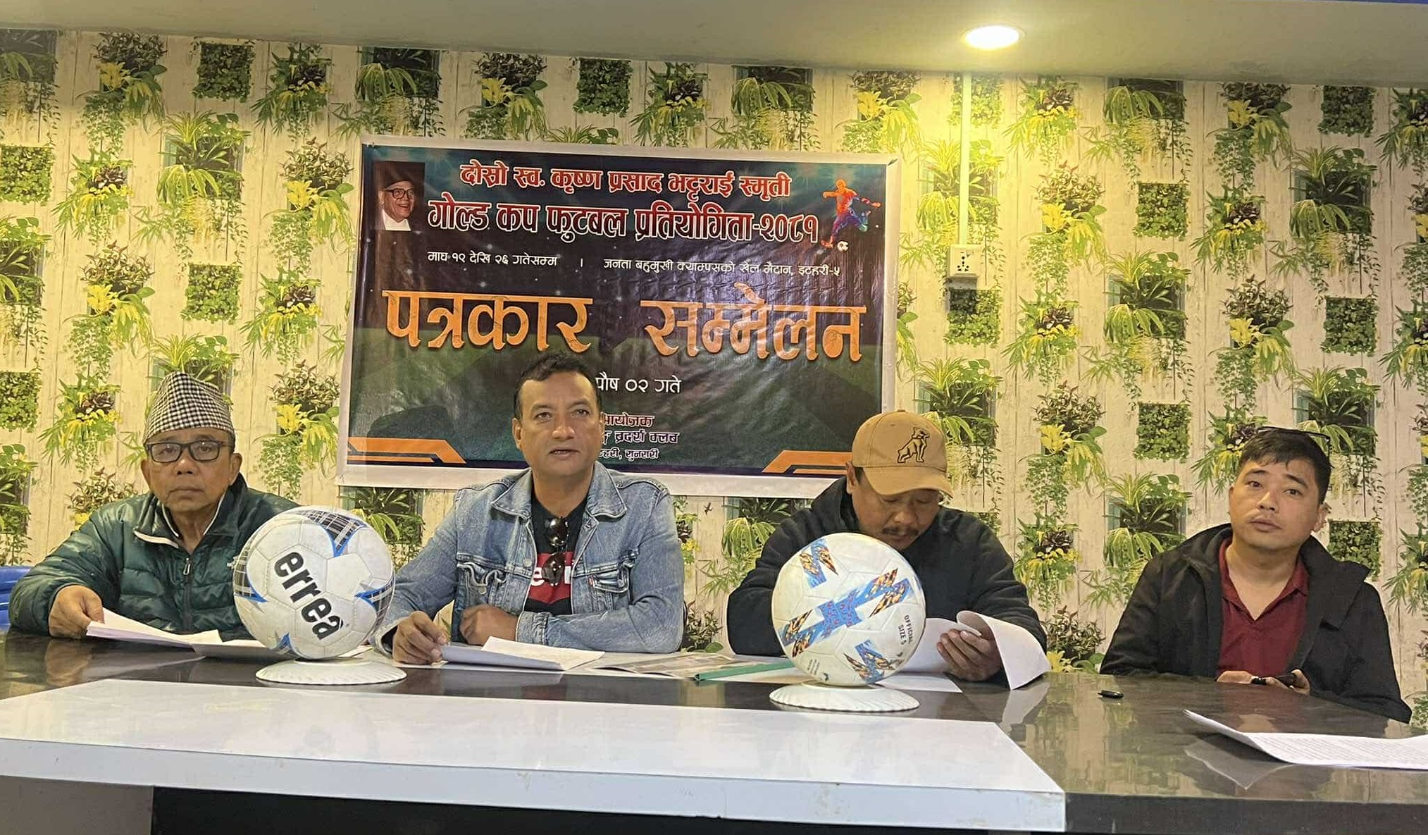 इटहरी : इटहरीमा दोस्रो स्व. कृष्णप्रसाद भट्टराई स्मृति गोल्डकपको तयारी थालिएको छ । द योङ ब्रदर्श क्लब इटहरीको आयोजनामा प्रतियोगिता हुन लागेको मंगलबार पत्रकार सम्मेलन गरी जानकारी दिइएको छ ।