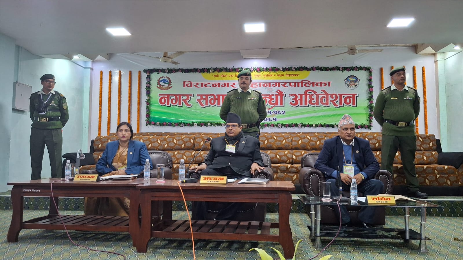 विराटनगर : विराटनगर महानगरपालिका नगरसभाको १५ औँ अधिवेशन सम्पन्न भएको छ । महानगरले चालु आर्थिक वर्षका लागि तय गरेको बजेट यथावत राखेर नगरसभाको १५ औँ अधिवेशन सम्पन्न भएको हो ।