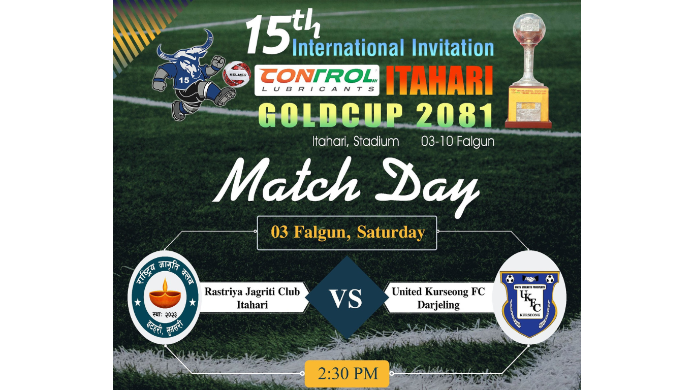 इटहरी : १५ औँ अन्तराष्ट्रिय आमन्त्रण कन्ट्रोल इटहरी गोल्डकप यही शनिबार (आज)देखि हुँदैछ । प्रतियोगिता इटहरी रंगशालामा दिनको २ः३० बजेदेखि हुनेछ ।