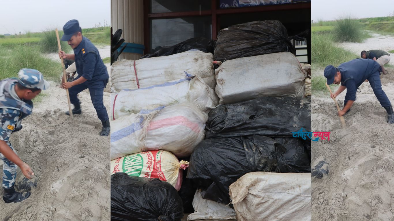 त्यस्तै, सशस्त्र प्रहरी बल नेपाल घुस्कीका सप्रनि नरेन्द्र घिमिरे र सशस्त्र प्रहरी बल वसन्तपुरका सप्रनि इन्द्रजंग थापाको कमान्डमा थप २० जना सशस्त्र प्रहरी खटिएको संयुक्त टोलीले उक्त क्षेत्रको विस्तृत खोजतलास गर्दा बालुवामुनि गाडिएको अवस्थामा प्लास्टिकका ३८ वटा बोरामा प्याक गरिएको लागूऔषध गाँजा बरामद गरिएको हो ।