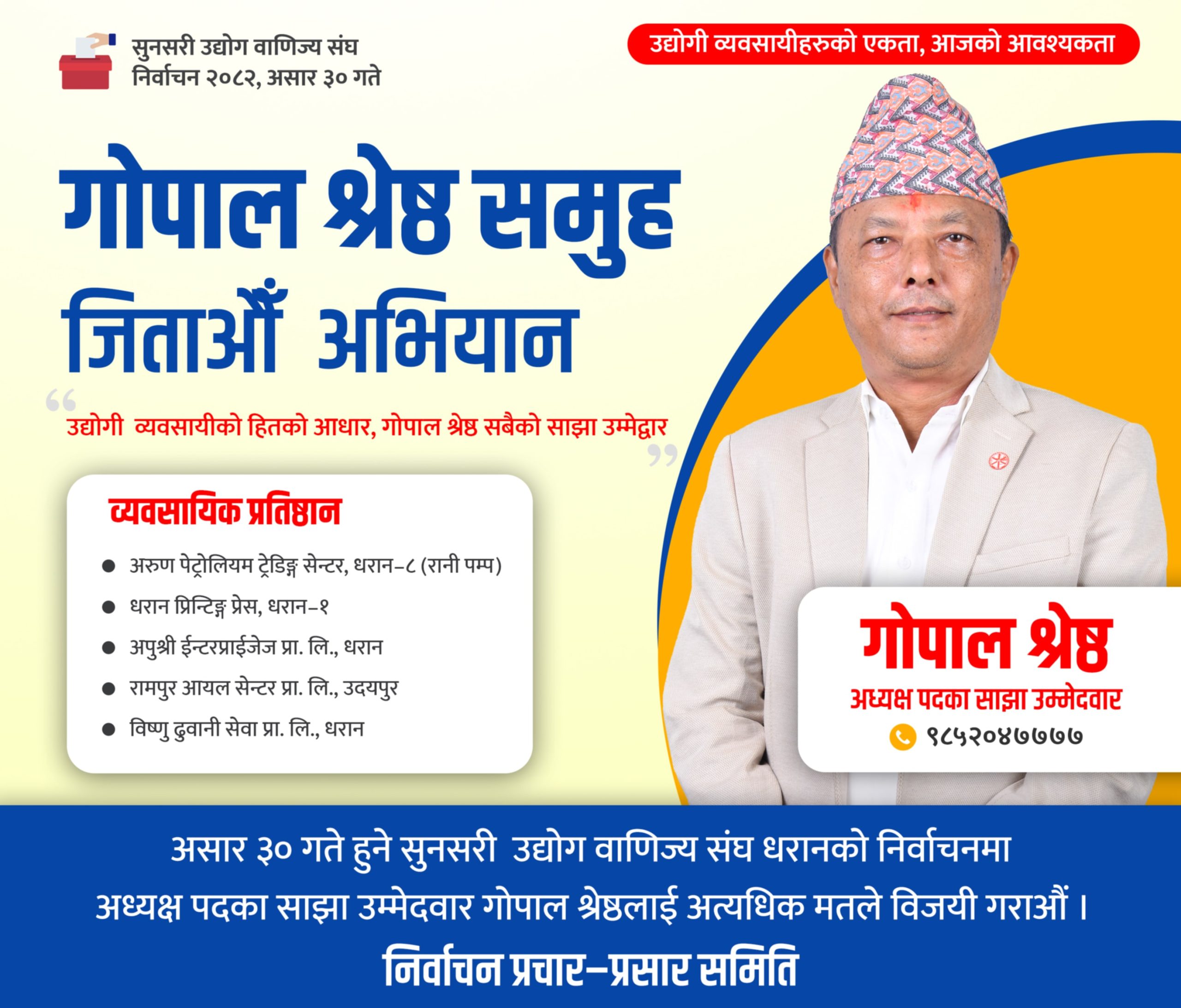 Tags: गोपाल श्रेष्ठसुनसरी उद्योग वाणिज्य संघ