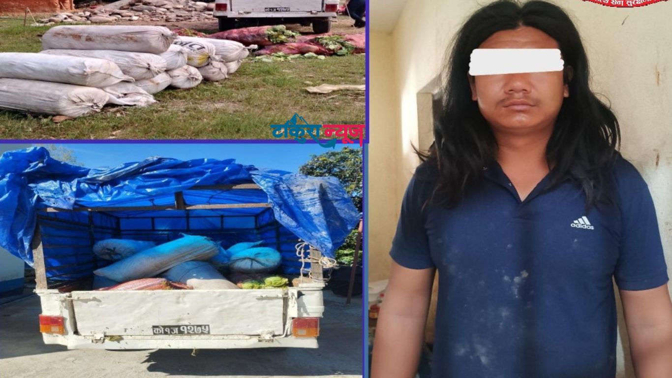 गाँजा बरामद भएसँगै गाडी र चालक धनकुटाको सहिदभूमी २ का २९ वर्षीय तेज राईलाई नियन्त्रणमा लिइएको छ ।