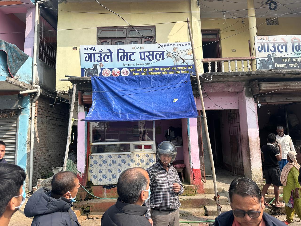 उपभोक्तालाई खसीको मासु भन्दै फरक प्रकृतिको मासु बिक्री गरी ठगी गरिएको ठहर गर्दै गाउँले मिट पसल र खान पसलविरुद्ध प्रचलित कानुनअनुसार कारबाही प्रक्रिया अघि बढाइएको कृषि तथा पशुपंक्षी शाखाका संयोजक हीरालाल यादवले जानकारी दिए ।