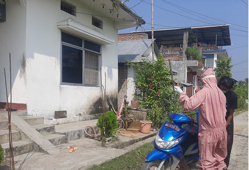 तर, आफ्नो स्वास्थ्यको जोखिमका बाबजुद पनि इटहरी २० तरहरामा रहेको लिबरल सोसाइटीका युवाहरुले कोरोना संक्रमित भएको घर गाउँमा आफैँ गएर सेनिटाइज गर्दै आएका छन् ।