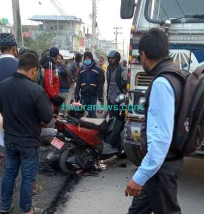 तरहराको बरगाछीमा ट्रकले स्कुटरलाई ठक्कर दियो, धमला गम्भीर घाईते