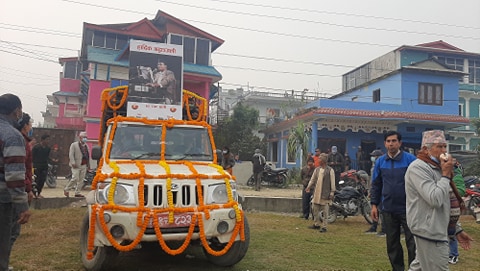 मधूरो धूनमा गाडीमा गीत बजिरहेको थियो । सोमबार विहान इटहरी २ मा रहेको संगीत साधना प्रतिष्ठानमा उपस्थित भएका मानिसहरुको आँखा रसाएका देखिन्थे ।