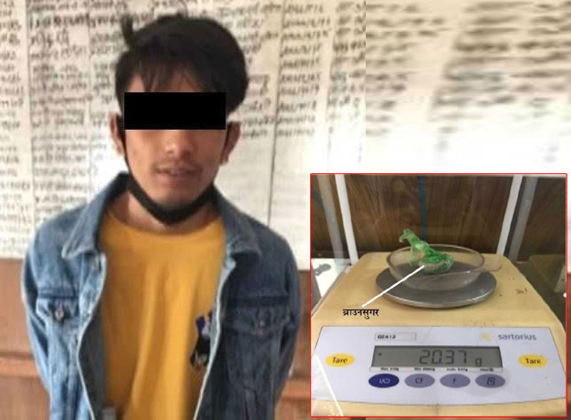 झापा कमल गाँउपालिका ६ बस्ने २० बर्षीय नवराज भट्टराई लागुऔषध खैरो हिरोईन ब्राउनसुगर सहित पक्राउ परेका छन ।