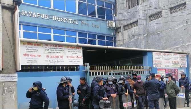 हस्पिटलभित्रै दुई पक्षबीच छलफल चलिरहदा हस्पिटल मुलगेटमा प्रहरीले कडा सुरक्षा दिइरहेको छ । हस्पिटलमा प्रवेश गर्ने मानिसहरुलाई पनि प्रहरीले कडाई गरेको छ ।