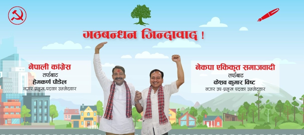इटहरीमा गठबन्धनबाट मेयरमा कांग्रेसका हेमकर्ण पौडेल र उपमेयरमा नेकपा एकीकृत समाजवादीका केशवकुमार विष्ट उम्मेदवार छन् ।