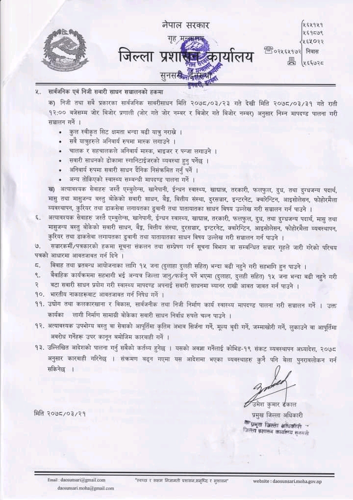 अन्य निर्णय भने यथावत् रहने सुनसरी प्रशासनले जनाएको छ ।