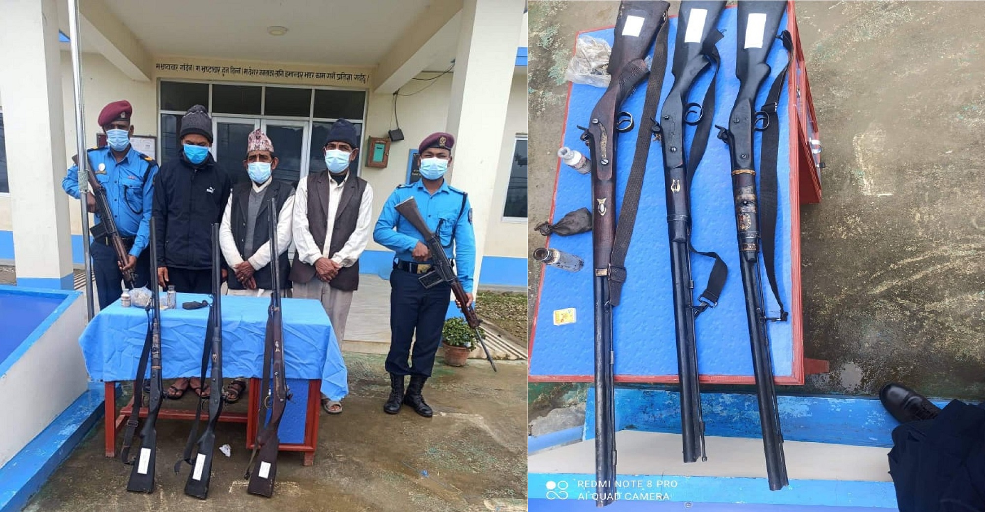 पक्राउ परेका वडा सदस्य पर्शुरामको घरबाट लोड नगरेको एक थान भरुवा बन्दुक तथा मदनबहादुरको घरबाट छर्रा र बारुदसमेत लोड गरेको एक थान भरुवा बन्दुक र त्यसमा प्रयोग हुने १५० ग्राम बारुद, ४०० ग्राम धातुका छर्रा र सलाई तथा मिलनको घरबाट छर्रा, बारुद लोड गरेको एक थान भरुवा बन्दुक बरामद गरिएको प्रहरीले जनाएको छ ।