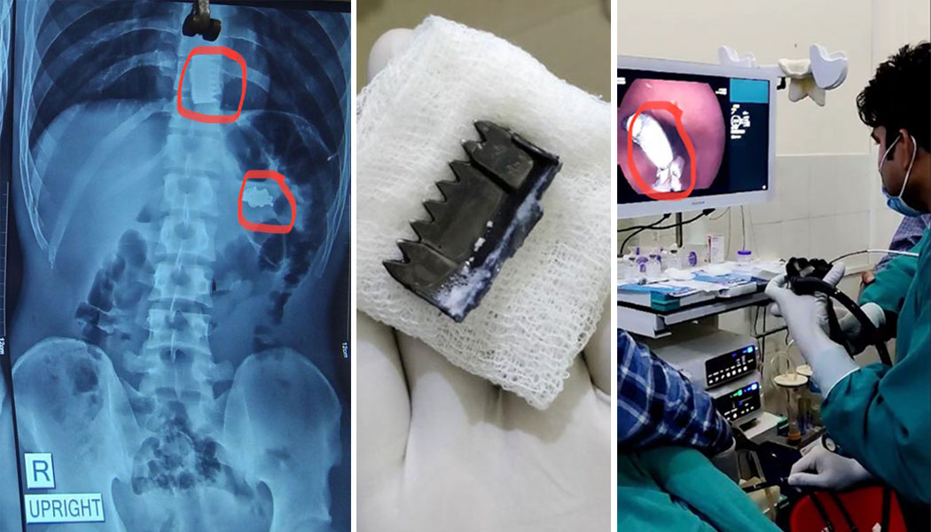 डा.शाहका अनुसार ती युवाको पेटको खाना नलीमा बक्कल अड्किएको थियो भने आमाशयमा सिक्री थियो । मुखबाट इण्डोस्कोप छिराएर मुखबाटै बक्कल निकालिएको हो । आमाशयमा रहेको सिक्री भने दिशाको माध्यमबाट निस्किएको हो ।
