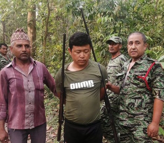 सब डिभिजन कार्यालयका रेञ्जर दीपकसेन भण्डारीका अनुसार चारकोसे जंगलमा बन्यजन्तु चोरी सिकार गर्नका लागि चारजनाको सख्यामा पुगेका उनीहरू बन कार्यालयको गस्ती टोलि देखेपछि भाग्ने प्रयास गरेका थिए ।