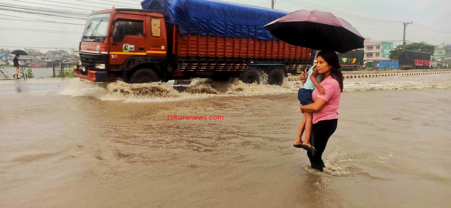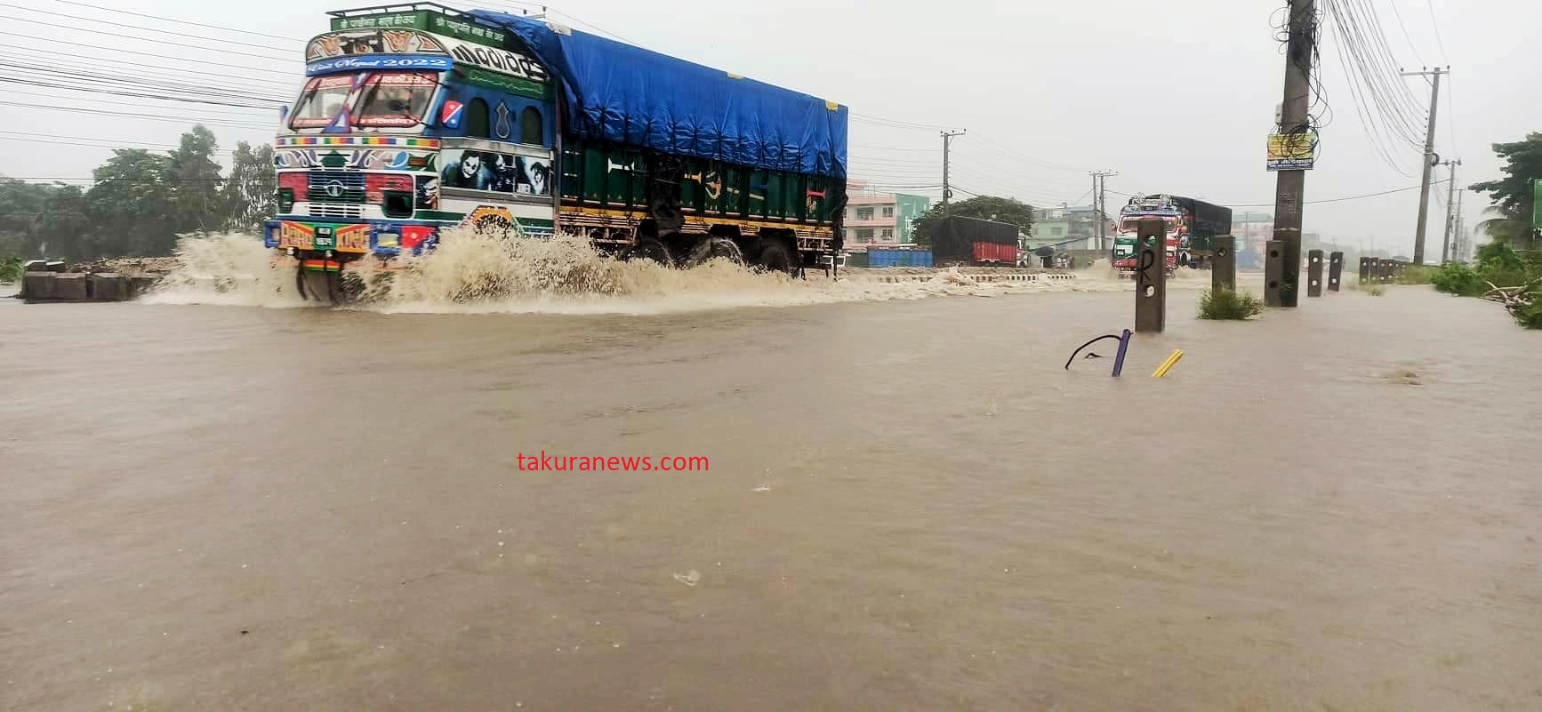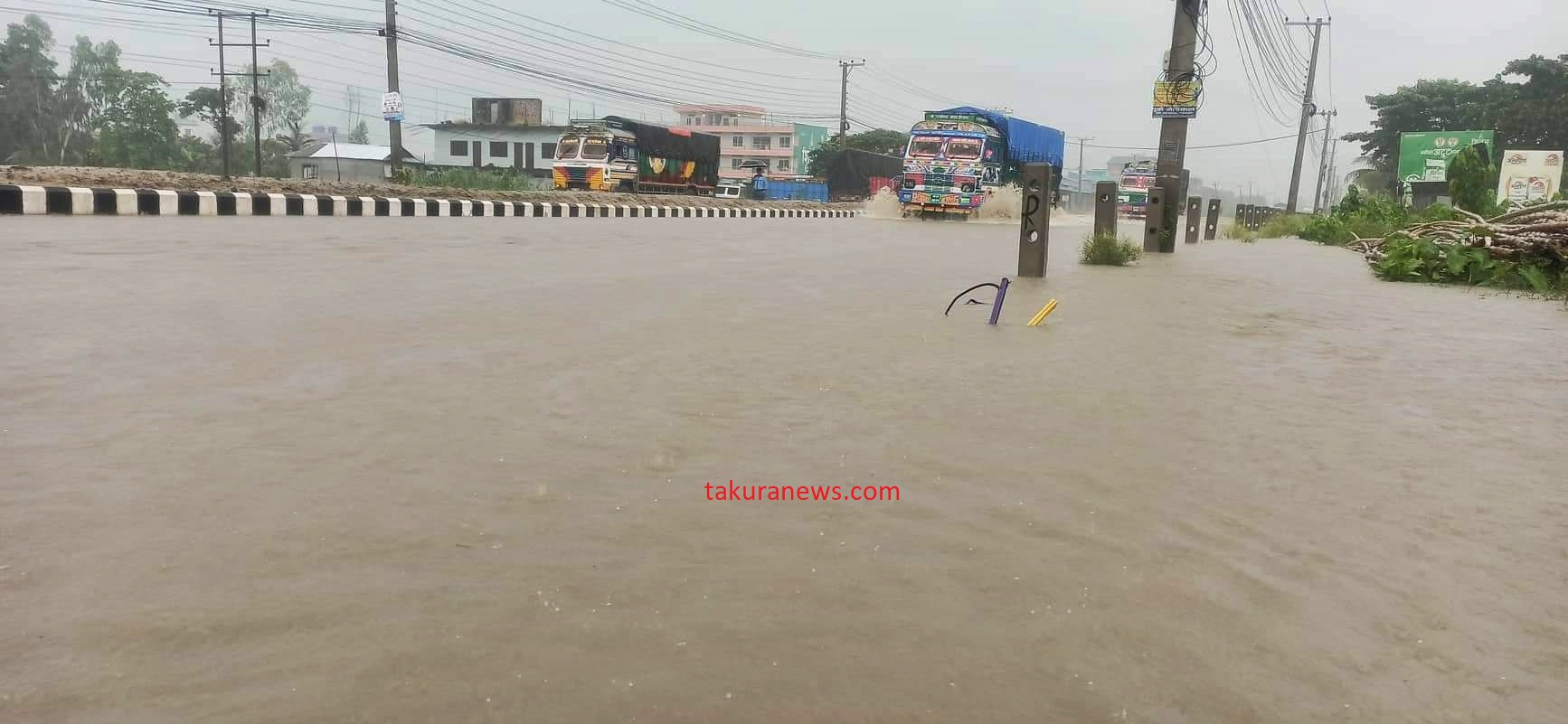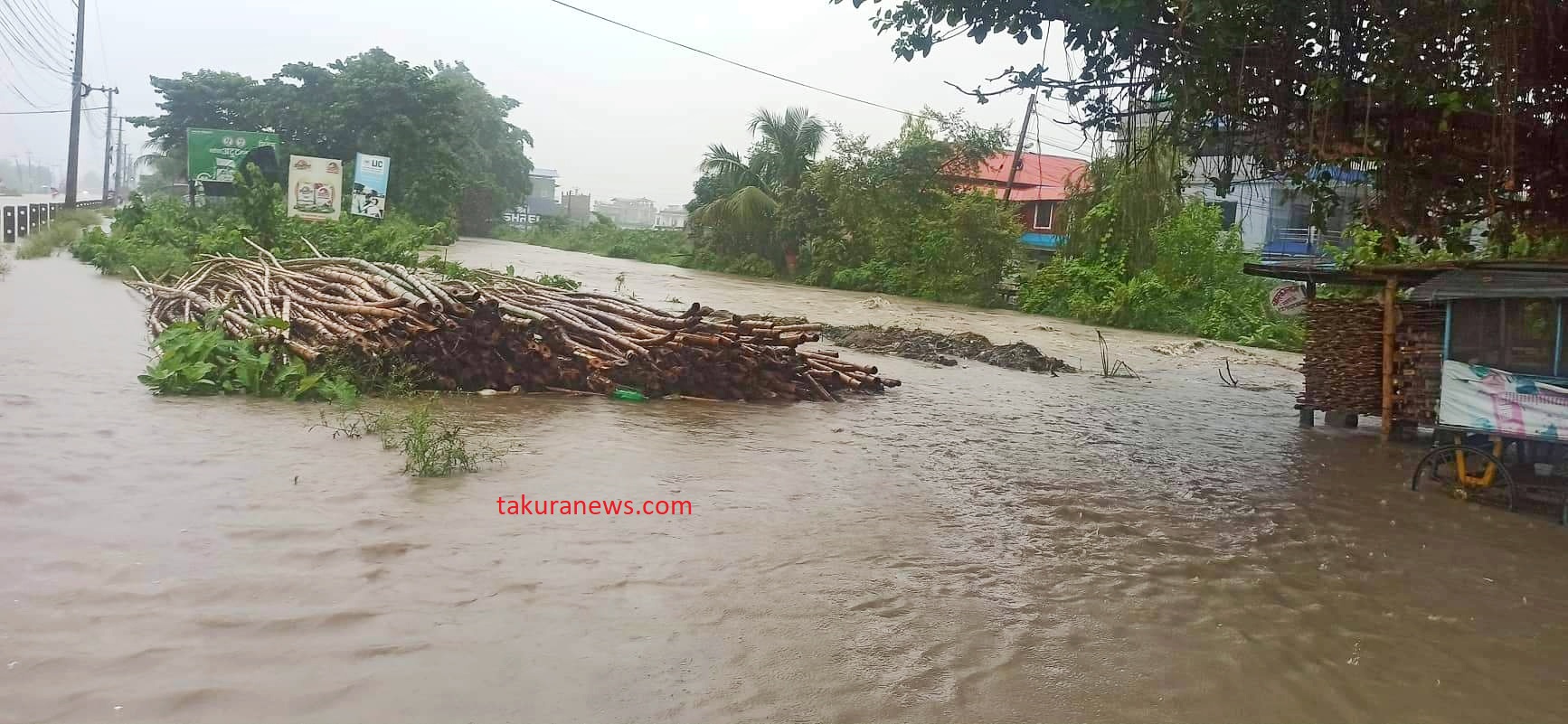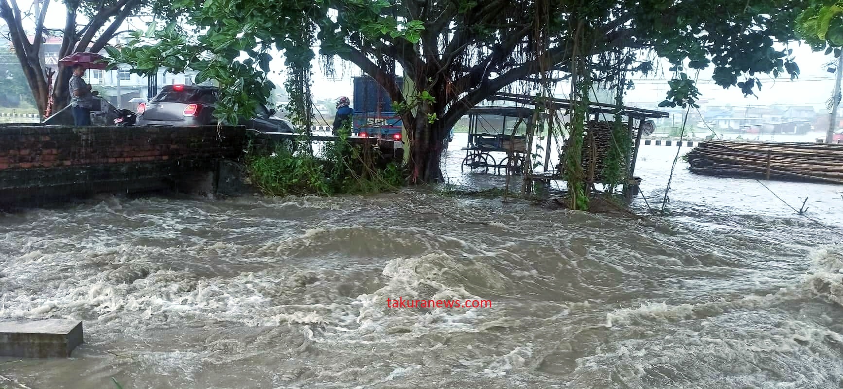 ‘साथी पेट्रोल पम्पको उत्तरबाट छिरेको बाढी कर कार्यालयभन्दा दक्षिणसम्म उस्तै छ,’ उनले टाकुरासँग भने, ‘सडकमै एक फिट, डेढ फिट र दुई फिटसम्म पानी जमेको छ, मोटरसाइकल, साइकल र सफारीको आवतजावत ठप्प छ ।’ उनका अनुसार ठूला सवारी साधन भने चलिरहेका छन् ।