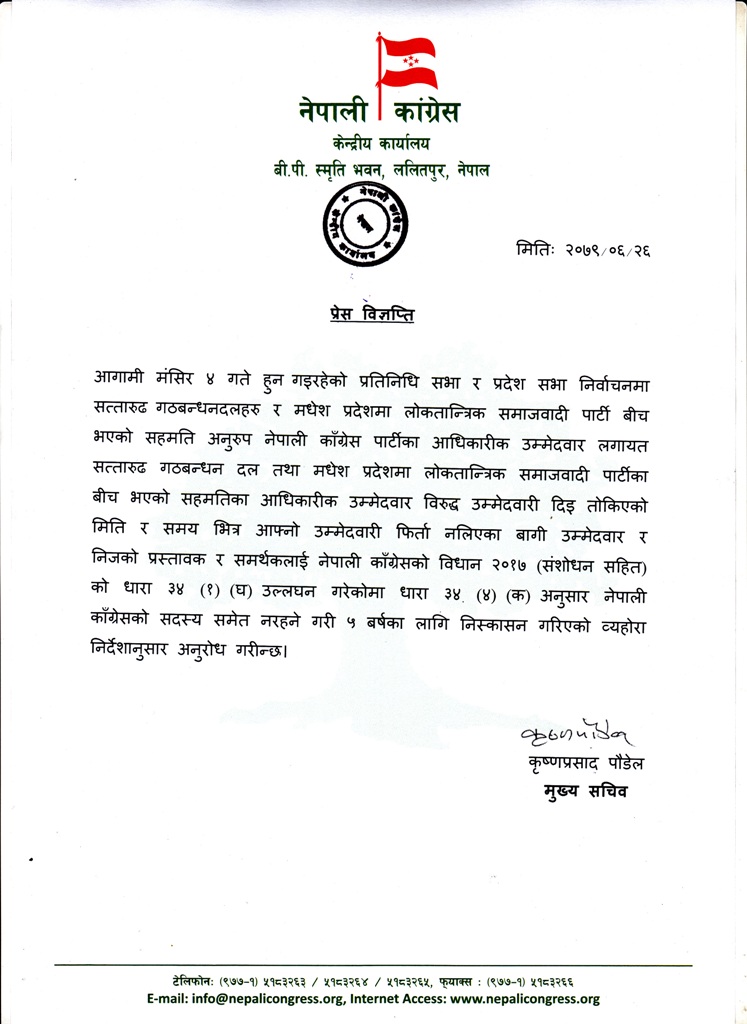 Tags: #कांग्रेस#नेपाली कांग्रेसनिर्वाचननिष्कासनबागी