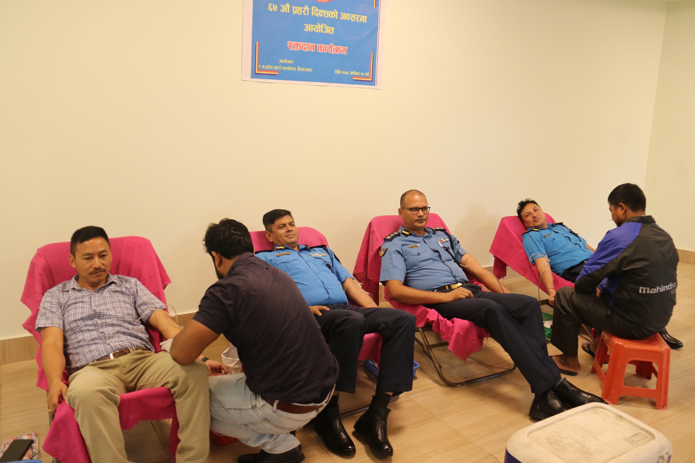 कार्यक्रममा १ नम्बर प्रदेश प्रहरी कार्यालय विराटनगर, १ नम्बर प्रदेश प्रहरी तालिम केन्द्र, १ नम्बर प्रदेश ट्राफिक व्यवस्थापन तथा राजमार्ग सुरक्षा कार्यालय इटहरी, १ नम्बर प्रदेश सशस्त्र प्रहरी गण, १ नम्बर प्रदेश विशेष सुरक्षा गण दुहवी र जिल्ला प्रहरी कार्यालय मोरङमा कार्यरत रहेका ४१ जना प्रहरी अधिकृत तथा जवानहरूले रक्तदान गरेका थिए ।