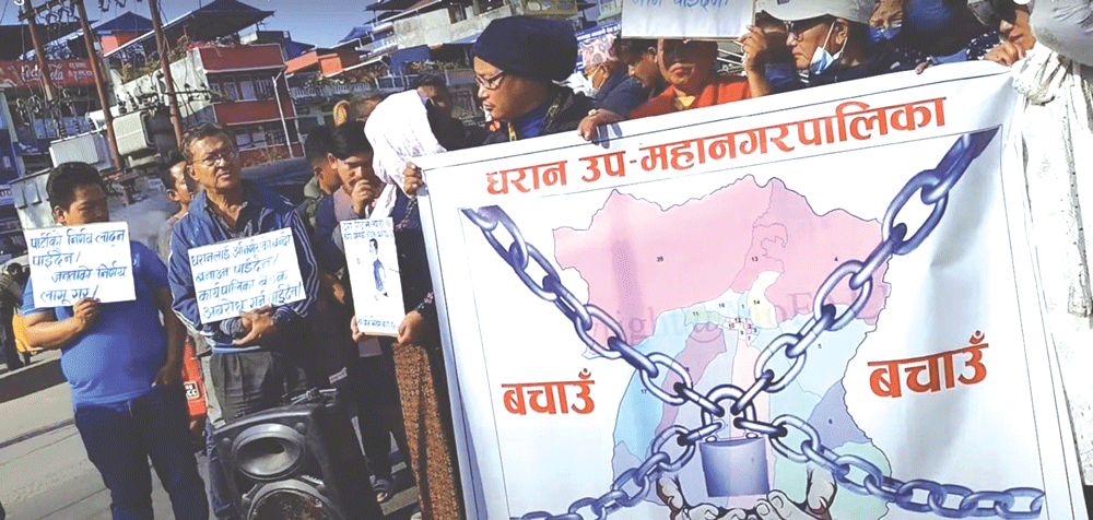 धरान : धरान उपमहानगरपालिका कार्यपालिकाको बैठकको विवादका कारण नगर अनिर्णयको बन्दी बनेको भन्दै नगरप्रमुख हर्कराज राई (हर्क साम्पाङ) का समर्थकहरूले भानुचौकमा प्रदर्शन गरेका छन् ।