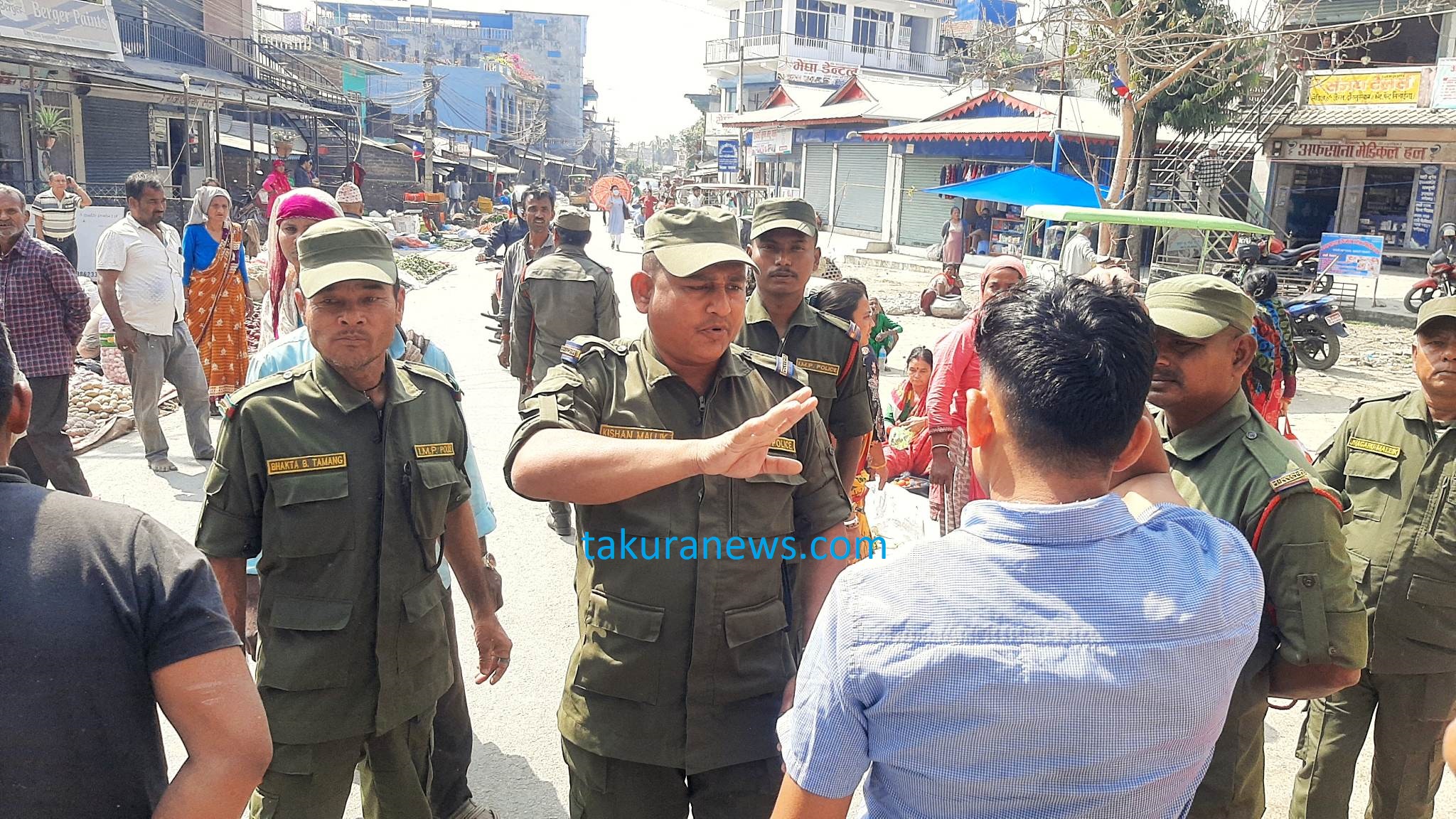 बजारमा पाल नटाङ्न अनुरोध गरेपनि व्यापारीहरूले अटेर गरेको भन्दै नगर प्रहरीहरूले आफैँ पालको डोरी काट्ने, जथाभावी रूपमा हप्कीदप्की गर्ने गरेका छन् ।
