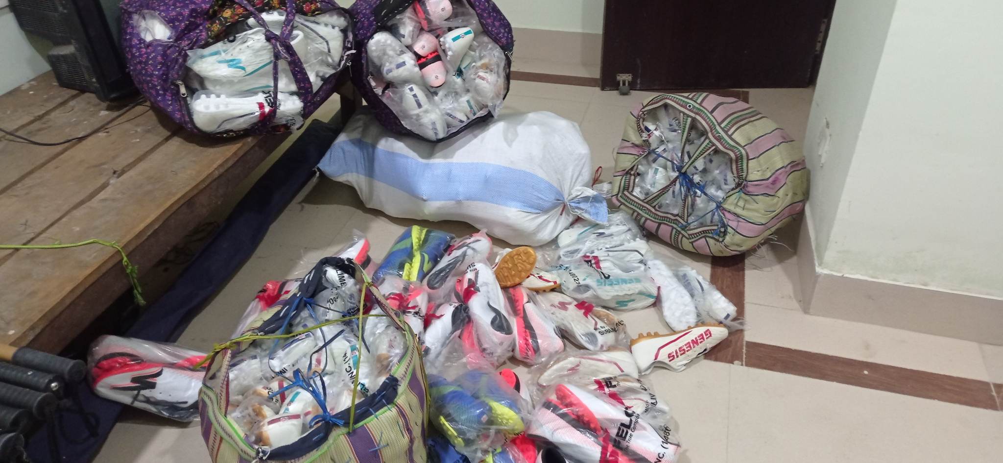 खाद्यान्नका सामग्रीहरूका साथै १२५ जोर फुटबल बुट समेत गरी करीब २ लाख २६ हजार रुपैयाँ बराबरको सामान तथा सामान ओसार–पसार गर्न प्रयोग गरेको मे ५ प ६४३२ र बीआर ३७ जी २७७३ नम्बरको मोटरसाइकल समेत प्रहरीले नियन्त्रणमा लिएको हो ।