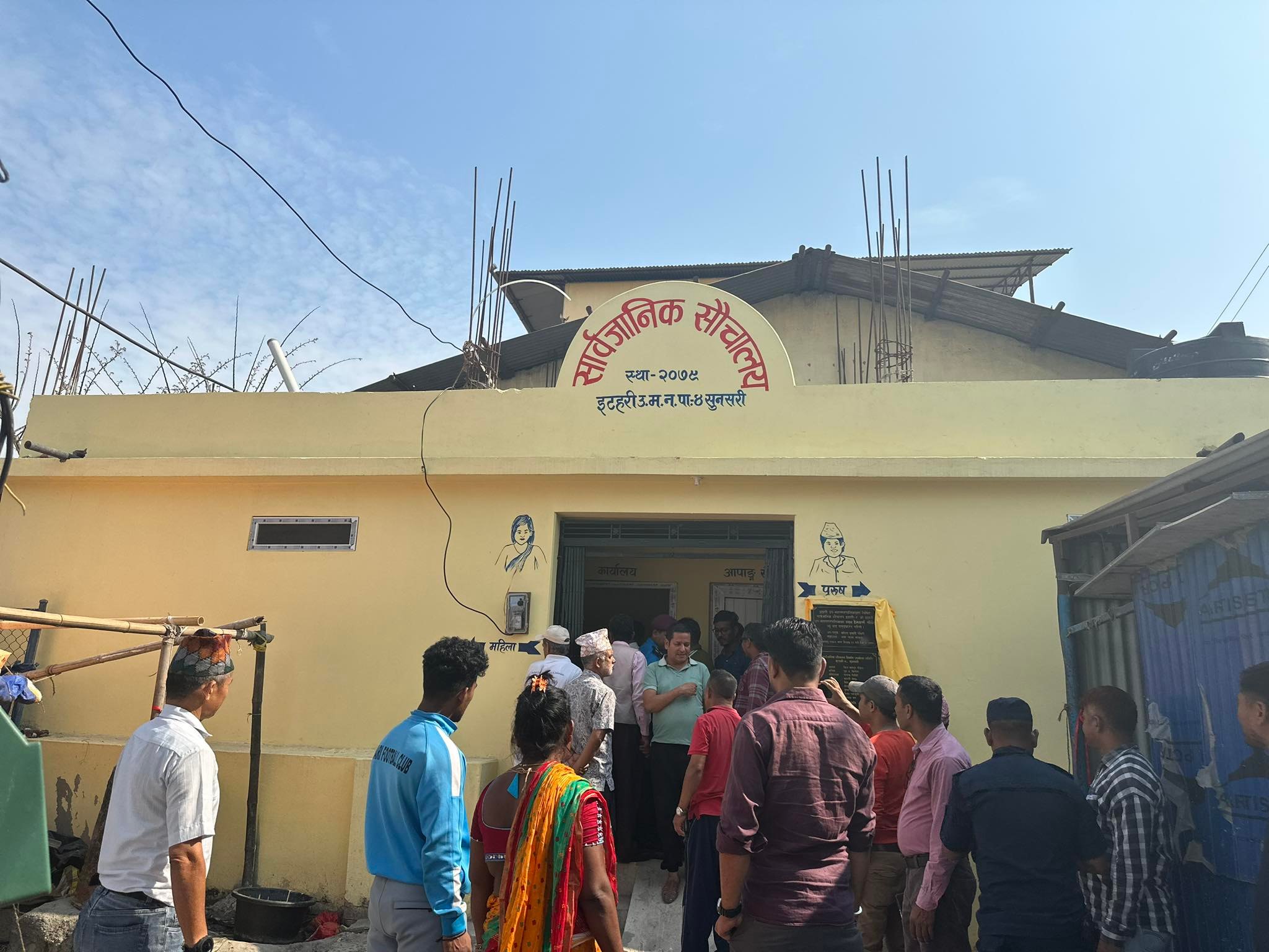 इटहरीको पूर्व लाइनस्थित जुटविकास चौकमा बनेको शौचालयको उद्घाटन गरिएको हो । बुधवार उद्घाटन भएकोसहित इटहरीमा ४ वटा सार्वजनिक शौचालय भएका छन् ।