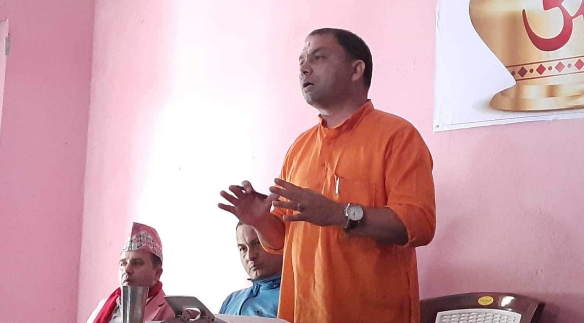 कुम्भ मेलाबारे पत्रकार सम्मेलन गरी जानकारी दिँदै बराहक्षेत्र नगरपालिकाका मेयर रमेश कार्की ।