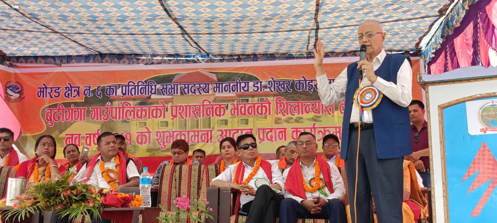 मोरङका बूढीगंगा गाउँपालिकाको प्रशासनिक भवनको शिलान्यास कार्यक्रमलाई सम्बोधन गर्दै प्रतिनिधिसभाका सांसदसमेत रहेका नेता कोइरालाले स्थिर सरकार र सुशासनका लागि अहिलेको निर्वाचन प्रणालीलाई संशोधन गर्नुपर्नेमा जोड दिए ।