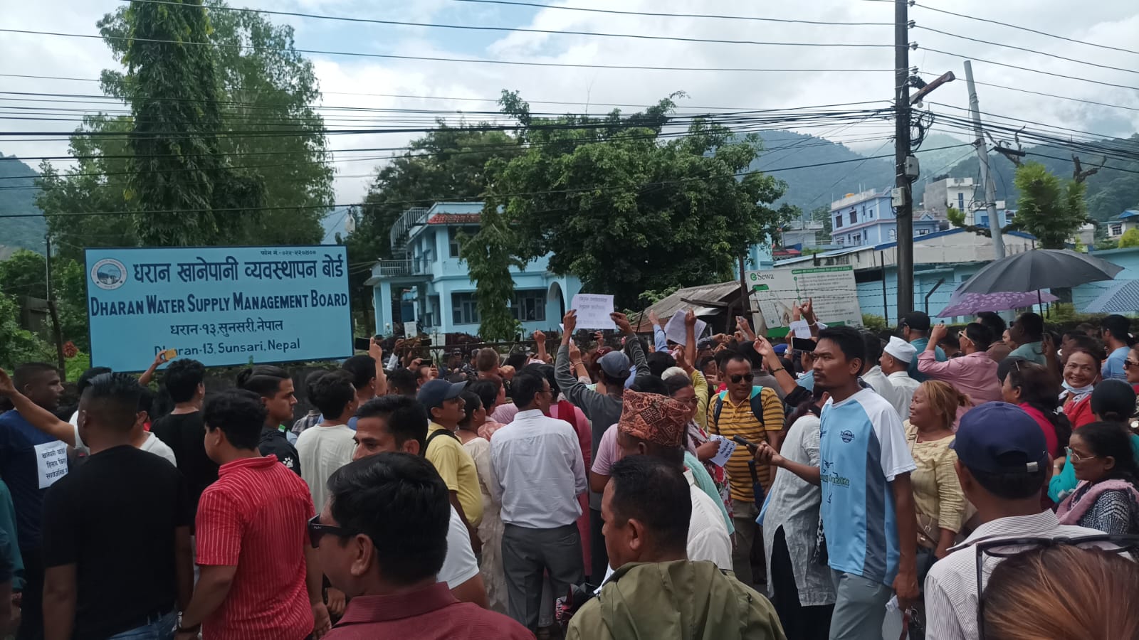 आइतबार धरानमा १० राजनीतिक दलहरूसहित उपभोक्ताहरूले विरोध जनाउँदै खानेपानी बोर्डको कार्यालयमा तालाबन्दी गरेका हुन् । खानेपानी बोर्ड धरानका कार्यकारी निर्देशक राजु पोखरेलको कार्यकक्षमा आइतबार तालाबन्दी गरिएको हो ।