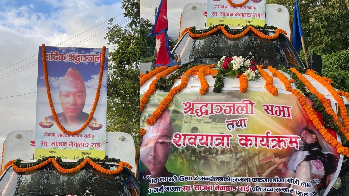 धरान : काठमाडौँमा आयोजित जेन-जी आन्दोलनको क्रममा ज्यान गुमाएका धरान उपमहानगरपालिका–५ निवासी ४२ वर्षीय साजन मेवाहाङ राईको शव धरान ल्याई अन्त्यष्टि गरिएको छ।