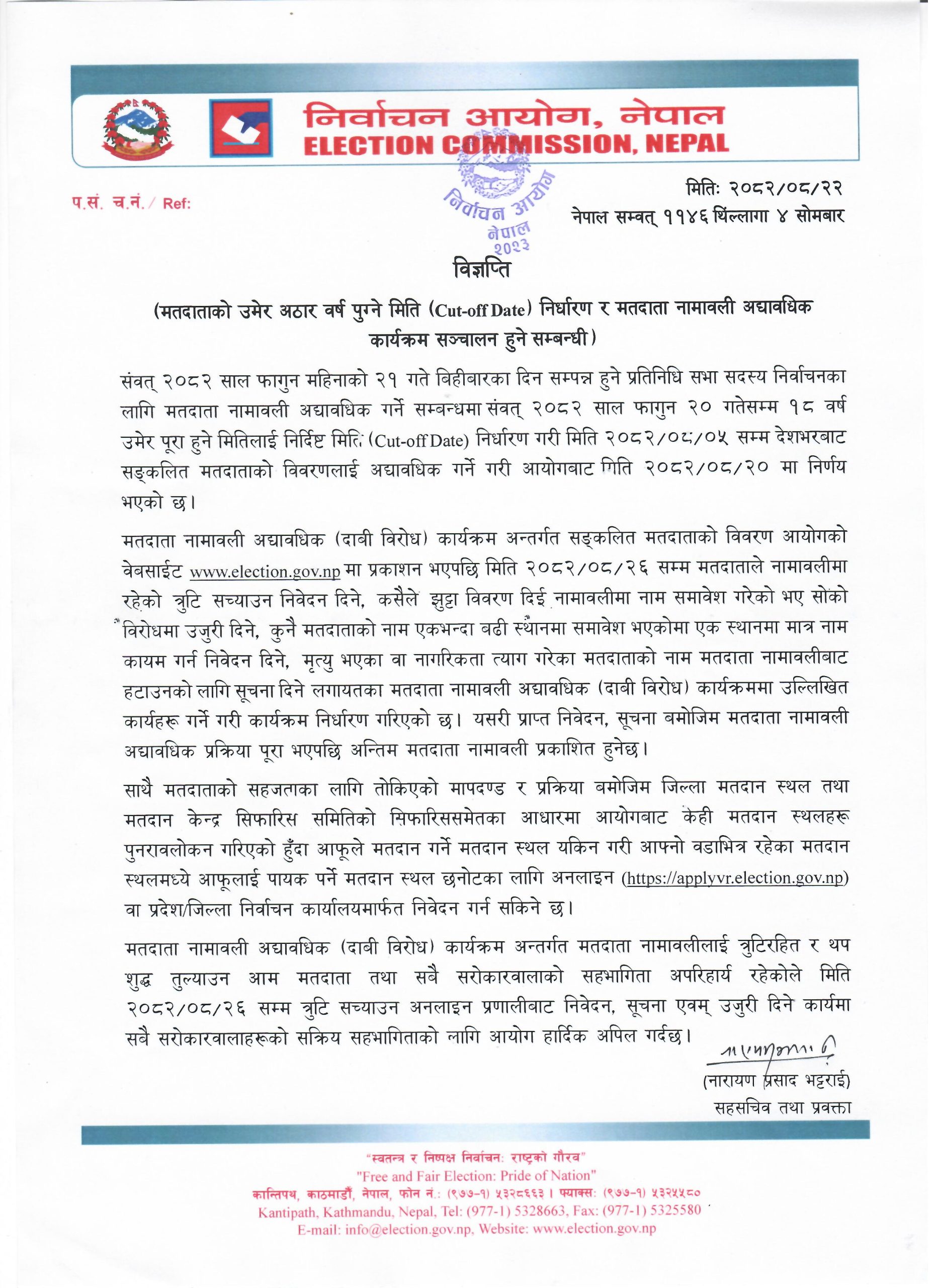 मंसिर २६ गतेभित्र मतदाता नामावलीमा रहेको त्रुटि सच्याउन सकिने