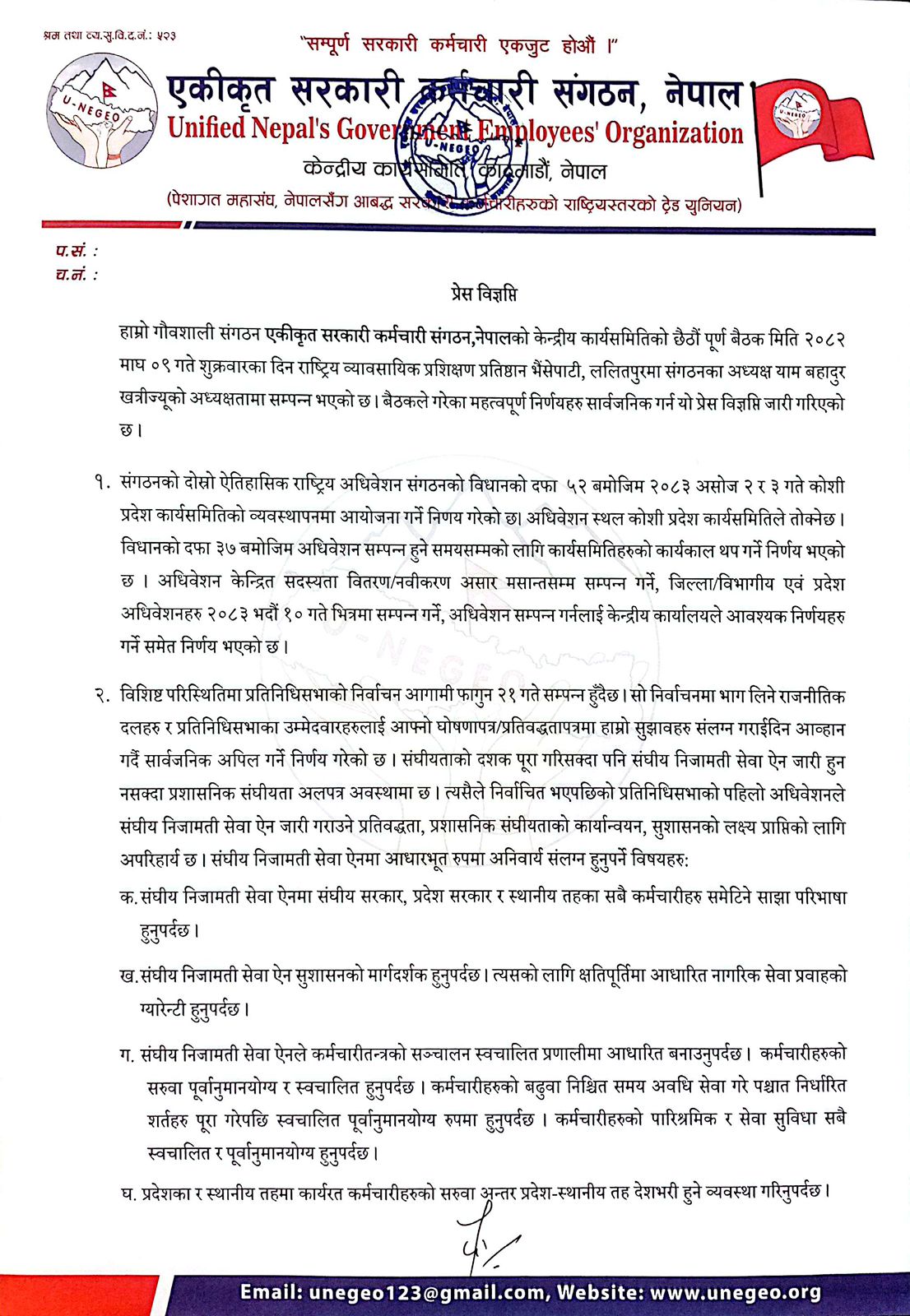 अधिवेशन सम्पन्न नहुँदासम्म विधानअनुसार वर्तमान कार्यसमितिहरूको कार्यकाल थप गरिएको छ।